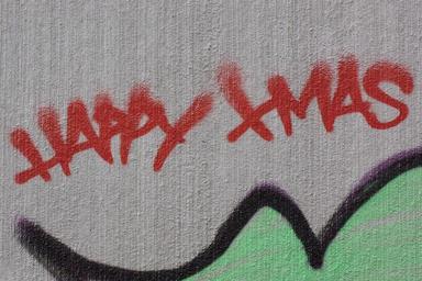 Keywords: merry christmas xmas christmas graffiti wall grunge city home masonry facade youth creativity paint sprayer spray vandalism graphic graphically red green