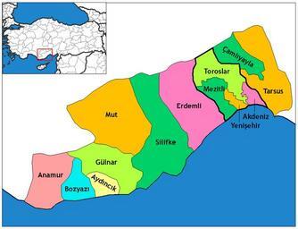 | Keywords: Mersin districts.png Map of the districts of Mersin province in Turkey Created by Rarelibra 16 37 4 December 2006 UTC for public domain use using MapInfo Professional v8 5 and various mapping resources Edited by One Homo Sapiens Corrected text where İ Ş ı ğ or ş occurs in name Source statoids-com Increased font size and enhanced color differences among adjacent districts 2006-12-04 own assumed Rarelibra Maps of Mersin Province Maps of districts in Turkey Districts of Mersin Province | ||||
