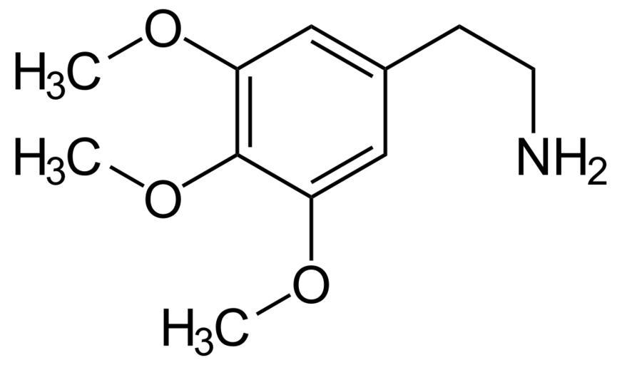 Keywords: Mescalin - Mescaline.svg Struktur von Mescalin Structure of mescaline own 2007-03-06 NEUROtiker Phenethylamine alkaloids Mescaline Psychoactive drugs