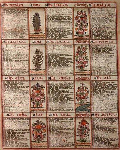 Keywords: Mesiaceslov Rus.jpg ru Русский календа ь-месяцеслов XIX век еизвестный художник XIX c http //tvoyhram ru/slavprazd/slav_prazd01 8 html author PD-old-100 Uploaded with UploadWizard Slavic folk calendar in Russia Calendars of Russia