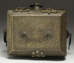 Keywords: Mesopotamian - Casket with Harpies - Walters 54525 - Top.jpg Seated figures are shown in central roundels on the sides and cover and in spandrels on front and back Harpies appear in spandrels on the sides and the cover century 12 13 brass silver cm 14 5 14 8 11 accession number 54 525 13793 Dikran Kelekian New York and Paris date and mode of acquisition unknown Henry Walters Baltimore January 6 1925 by purchase Walters Art Museum Henry Walters Acquired by Henry Walters 1925 place of origin Iraq Walters Art Museum license Islamic metalwork in the Walters Art Museum Art of Mesopotamia in the Walters Art Museum Media contributed by the Walters Art Museum needs category review |