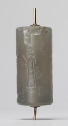 Keywords: Mesopotamian - Cylinder Seal with Archer and Winged Lion - Walters 421195 - Side E.jpg A worshiper faces a deity standing on a griffin and aiming his bow and arrow at an upright winged lion-demon The winged disk of Ashur the patron god of Assyria appears above The three-line inscription gives the name of the owner Assyrians enjoyed the translucent and vibrant colors of semiprecious stones such as chalcedony between 900 700 BC Neo-Assyrian carved chalcedony gold cm 6 6 2 1 h x diam accession number 42 1195 34654 Mrs Henry Walters New York Sale Joseph Brummer New York 1941 Walters Art Museum 1942 by purchase Museum purchase 1942 Inscription place of origin Mesopotamia Walters Art Museum license Cylinder seals in the Walters Art Museum Art of Mesopotamia in the Walters Art Museum Media contributed by the Walters Art Museum needs category review