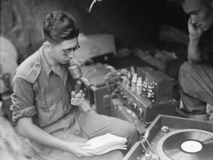 | Keywords: black and white blackandwhite australian war memorial australianwarmemorial unesco audiovisual heritage recording blackandwhite monochrome black and white ID number: 079733 Photographer: Francis Walter Butt Place: Pearl Ridge, Bougainville Members of the Far Eastern Liaison Office (FELO) broadcasting a surrender message to nearby Japanese soldiers. Rights Info: No known copyright restrictions. This photograph is from the Australian War Memorial's collection www.awm.gov.au Persistent URL: www.awm.gov.au/collection/079733/ ID number: 079733 Photographer: Francis Walter Butt Place: Pearl Ridge, Bougainville Members of the Far Eastern Liaison Office (FELO) broadcasting a surrender message to nearby Japanese soldiers. Rights Info: No known copyright restrictions. This photograph is from the Australian War Memorial's collection www.awm.gov.au Persistent URL: www.awm.gov.au/collection/079733/ |