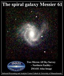 | Keywords: Messier 061 2MASS.jpg The spiral galaxy Messier 61 http //www ipac caltech edu/2mass/gallery/messiercat html 2MASS Atlas Image Gallery The Messier Catalog Two Micron All Sky Survey 2MASS a joint project of the University of Massachusetts and the Infrared Processing and Analysis Center/California Institute of Technology funded by the National Aeronautics and Space Administration and the National Science Foundation 2MASS Atlas image Messier 61 2MASS Atlas Image Gallery The Messier Catalog BIG SIZE |