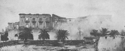 Keywords: Messina Palazzo Municipale prospetto Via Garibaldi dt. 1908(Giacomo Minutolì)1.jpg Messina il vecchio Palazzo Municipale costruito nel 1820 da Giacomo Minutolì prospetto su Via Garibaldi Nella foto l'incendio che distrusse il palazzo immediatamente dopo il terremoto del 1908 1908 author PD-old Palazzo municipale Messina - Former 1908 Messina earthquake |