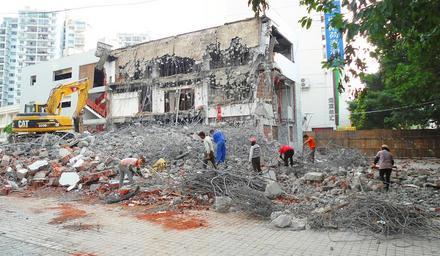 | Keywords: Metal rebar reclamation for recycling at building demolition site - 01.JPG en Workers extracting rebar and other metal from concrete rubble at building demolition site Haikou City Hainan Province China 2012-04-27 own Anna Frodesiak cc-zero Uploaded with UploadWizard Rebar Files by User Anna Frodesiak Building demolition Rubble |