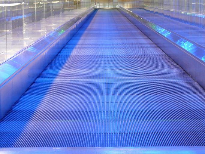 Keywords: metal segments moving walkway roller platform treadmill moving sidewalk rolling pavement means of rail transport escalator neon blue airport business trip light movement roll band transport futuristic strange means of transport facilitate pavement mirror mirroring neon light neon lights neon lighting lighting blue light bluish modern