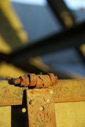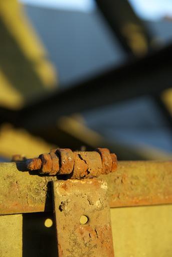 Keywords: metal stainless old decay ailing rusted iron screw rusty abstract corrosion rust rivet steel close sun evening sun out of focus contrast light shadow