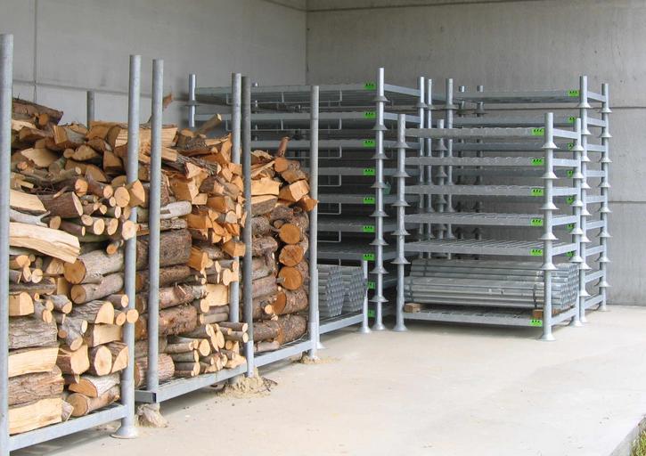 Keywords: MetalPalets.jpg en A picture of metal palets used here to store wood and to quickly move them by frontloader-truck whenever necessairy The palets are also frequently used for storing trees eg in tree nurseries after they have been gathered and are waiting to be sold in humid hangars Note the removable beams which allow easy stacking and allow when deployed to hold the trees in place Own KVDP 2008-06-25 Palets Freight Commercial item transport and distribution |
