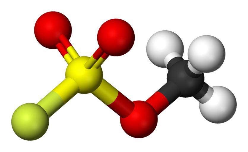 Keywords: Methyl-fluorosulfonate-3D-balls.png own Benjah-bmm27 Benjah-bmm27 Sulfur-fluorine compounds Sulfonate esters Methylating agents Methyl esters Ball-and-stick models