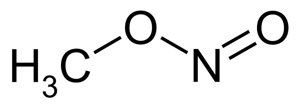 Keywords: Methyl nitrite structure.svg en Structure of Methyl nitrite de Struktur von Methylnitrit own Steffen 962 2013-06-24 PD-chem Methyl nitrite Cc-zero