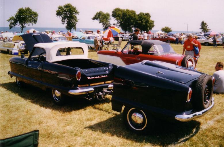 | Keywords: Metropolitan conversion pickup with trailer.JPG en Nash Metropolitan conversion into a super-mini custom pick-up truck with a matching trailer The cargo trailer was made by radically shortening a second Metropolitan Picture taken during the Metropolitan Automobile Car Club meet held in Kenosha Wisconsin Part of the 100th Anniversary Celebration of the Rambler events that was held in the park overlooking Lake Michigan own 2002-07-27 CZmarlin ” Christopher Ziemnowicz releases all rights but a photo credit would be appreciated if this image is used anywhere other than Wikipedia Please leave a note at Wikipedia http //en wikipedia org/w/index php title User_talk CZmarlin action edit section new here Thank you Nash Metropolitan Black pickup trucks Customized trailers Novelty vehicles Automobiles on grass 100th Anniversary Celebration of the Rambler |