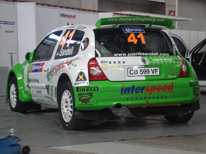 Keywords: MEX 2008 RB 41 parked 1.jpg Patrick Sandell's Renault Clio S1600 parked prior to the 2008 Rally Mexico at rally base in the Poliforum in Leon Mexico Own 2008-02-27 Joshbaumgartner 2008 Rally Mexico Patrik Sandell Renault Clio Super 1600