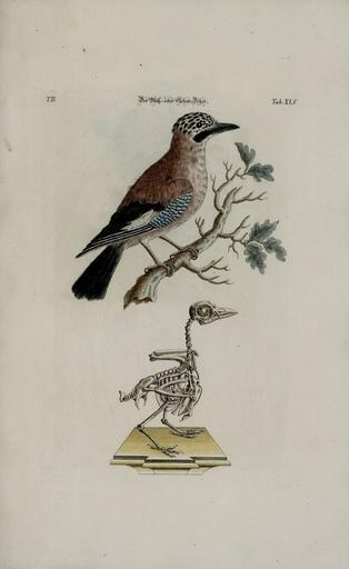 Keywords: Meyer Zeit-Vertreib 2 Tafel 045.jpg Angenehmer und nützlicher Zeit-Vertreib mit Betrachtung curioser Vorstellungen allerhand kriechender fliegender und schwimmender auf dem Land und im Wasser sich befindender und nährender Thiere sowohl nach ihrer Gestalt und äusserlichen Beschaffenheit als auch nach der accuratest davon verfertigten Structur ihrer Scelete oder Bein-Cörper nebst einer deutlichen so physicalisch und anatomisch besonders aber osteologisch und mechanischen Beschreibung derselben / nach der Natur gezeichnet gemahlet in Kupfer gestochen und verlegt von Johann Daniel Meyer Miniatur-Mahler in Nürnberg; Band 2; Nürnberg 1752<br /> Tafel 45 Nuß- oder Eichenhäher http //resolver sub uni-goettingen de/purl PPN624675343 1752 Creator Johann Daniel Meyer PD-old-100 Angenehmer und nützlicher Zeit-Vertreib 2 Meyer Garrulus glandarius anatomy Garrulus glandarius in art Corvidae bones Passeriformes skeletons |