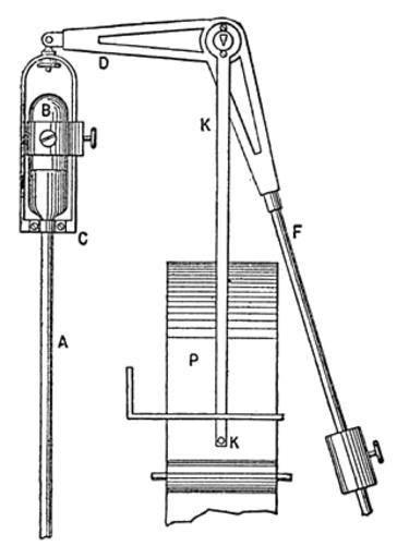 | Keywords: Meyers b2 s0387 b1.png de Waagebarometer A unterer Teil der Barometerröhre B oberer Teil derselben C Bügel D Arm des Waagebalkens F zweiter Arm mit verschiebbarem Gewicht K Zeiger P Papierstreifen Meyers b2 s0387 jpg ca 1885 author PD-Meyers Barometers Images from Meyers Konversationslexikon 4th edition - text figures |
