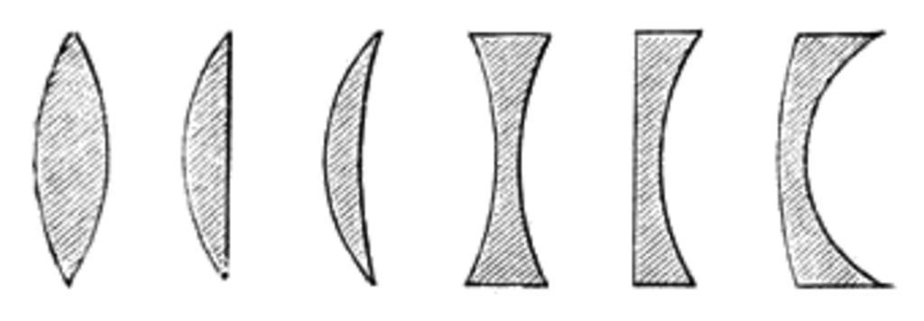 | Keywords: Meyers b3 s0430 b1.png de Linsenformen von links nach rechts Bikonvex Plankonvex Konkavkonvex Bikonkav Plankonkav Konvexkonkav Meyers b3 s0430 jpg ca 1885 author PD-Meyers Images from Meyers Konversationslexikon 4th edition - text figures Lens diagrams |