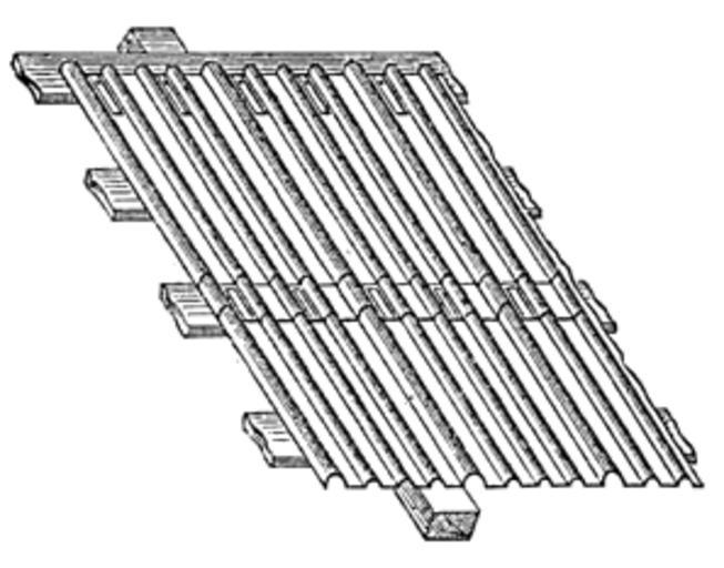 Keywords: Meyers b4 s0401 b2.png de Metallbedachung mit Blechschiefer Zusammenfügung der Blechschiefer Meyers b4 s0401 jpg ca 1885 author PD-Meyers Images from Meyers Konversationslexikon 4th edition - text figures Roof construction