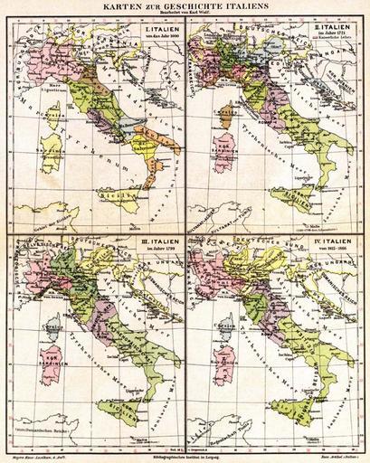 | Keywords: Meyers b9 s0067a.jpg Old maps of Italy Austria and Dalmatia showing 4 time periods AD 1000 1721 1799 1815-1866 The first map has labels in Latin German; the other 3 maps in German from German encyclopedia Meyers Konversations-Lexikon Alte Karten von Italien Österreich und Dalmatien in 4 Zeiträume Jahr 1000 1721 1799 1815-1866 Die erste Karte ist auf Latein und deutsch; aber die andere 3 Karten sind auf deutsch von Band 9 Meyers Konversations-Lexikon http //susi e-technik uni-ulm de 8080/Meyers2/index/index html 9 0067 0067b 1885-1890 for map years AD 1000 1721 1799 1815-1866 Karl Wolf Author died more than 70 years ago - public domain <gallery> File Map of Italy in 1300 simplified -NL svg 1300 File Volterra en Italie 1300 svg 1300 File Italy 1494 de svg 1494 </gallery> <gallery> File Italy 1796 de svg 1796 File Italy 1843 de svg 1843 File Italy 1864 de svg 1864 </gallery> PD-old Maps from Meyers Konversationslexikon 4th edition Italien Karten zur Geschichte Italiens Old maps of Italy Old maps of Austria Old maps of Dalmatia Old maps of Serbia |