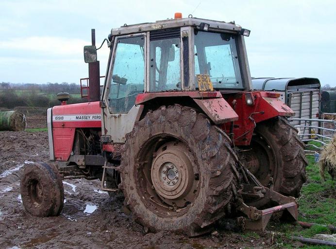 Keywords: MF 698 tractor 24f07.JPG A Massey Fergusion 698 tractor in a muddy field own 2007-02-24 Snowmanradio Snowmanradio Massey Ferguson 698 Red tractors Mud
