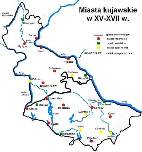 Keywords: Miasta Kujaw XV-XVIII w.jpg pl Miasta Kujaw w granicach Rzeczypospolitej Obojga Narodów XV-XVIII w Opracowane na podstawie Guldon Zenon Podziały administracyjne Kujaw i ziemi dobrzyńskiej w XIII-XIV wieku Warszawa Poznań Państwowe Wydawnictwo Naukowe 1974 Guldon Zenon Zaludnienie miast kujawskich w XVI i pierwszej połowie XVII wieku Prace komisji historii BTN Państwowe Wydawnictwo Naukowe oddział w Łodzi 1963 Guldon Zenon Lokacje miast kujawskich i dobrzyńskich w XIII-XVI w w Ziemia Kujawska II Inowrocław-Włocławek 1968 own Pit1233 2011-09 Kujawy Cc-zero |