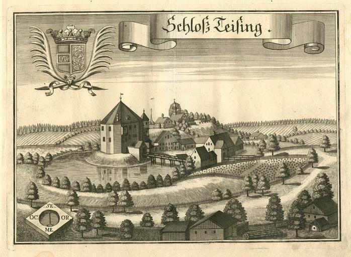 | Keywords: Michael Wening Schloß Teising.jpg Schloß Teising Schloß Teising bei Neumarkt-Sankt Veit aus Beschreibung des Churfürsten- u Hertzogthumbs Ober- und Nidern Bayrn Rentamt Landshut Gericht Neumarkt-Sankt Veit 1723 http //www steutzger biz/ early 18th century Creator Michael Wening Author died more than 70 years ago - public domain PD-old-100 Wooden bridges in Bavaria Bridges in Landkreis Mühldorf am Inn Engravings of castles in Bavaria by Michael Wening Teising Images from Antiquariat Steutzger Schloss Teising |