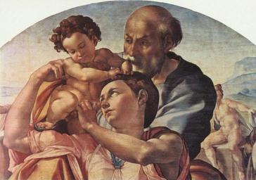 | Keywords: Michelangelo Buonarroti 047.jpg Artwork de Hl Familie Tondo Detail oil on wood de Durchmesser 120 cm Florence Institution Uffizi The Yorck Project 10 000 Meisterwerke der Malerei DVD-ROM 2002 ISBN 3936122202 Distributed by DIRECTMEDIA Publishing GmbH 1504-1505 creator Michelangelo Buonarroti http //mail wikipedia org/pipermail/wikide-l/2005-April/012195 html Other versions <gallery> File Michelangelo_Buonarroti_-_Tondo_Doni_-_Google_Art_Project jpg Complete work File Michel-Ange - Tondo Doni jpg Different tones </gallery> PD-old-100 PD-Art-YorckProject Tondo Doni Details of paintings by Michelangelo |