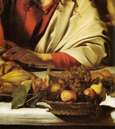 Keywords: Michelangelo Merisi da Caravaggio - Supper at Emmaus (detail) - WGA04145.jpg Artwork Creator Caravaggio Supper at Emmaus between 1601 1602 Oil on canvas Institution National Gallery London object history credit line accession number WGA link 4145 http //www wga hu/art/c/caravagg/06/35emmau3 jpg http //www wga hu/html/c/caravagg/06/35emmau3 html PD-old-100 painting religious Italian 1551-1600 Supper at Emmaus by Caravaggio London Details of paintings by Caravaggio WGA form painting WGA type religious WGA School Italian WGA time period 1551-1600
