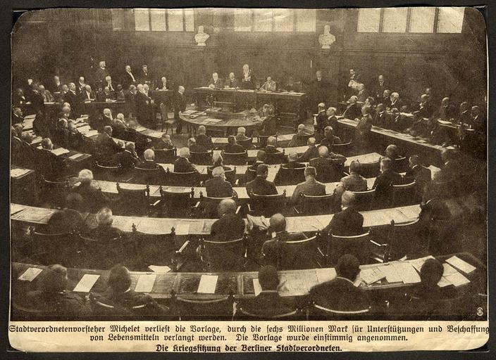 | Keywords: Michelet Stadtverordnetenversammlung 1915.jpg -- Wo st 01 <small> 2008-01-28 11 34 CEST </small> Die Stadtverordnetenversammlung von Berlin im Jahre 1915 unter Leitung von Paul Michelet public domain 1915 Sebastian Claudius pd-old Paul Michelet 1915 in Berlin |