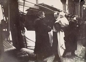 | Keywords: Michelsen Haakon 1905.jpg Kong Haakon VII ankommer Norge med Kronprins Olav på armen 1905 Bildet er tatt straks etter at kongen og hans følge har forlatt det danske kongeskipet Danneborg i Drøbaksundet og gått over i K/S Heimdal et kommandofartøy som seinere ble norsk kongeskip 25 november 1905 Statsminister Christian Michelsen ønsker velkommen til landet Heimdal førte så den nye kongefamilien og regjeringa videre inn til Kristiania der følget steig i land ved Akershus festning straks før klokka 13 Tross surt vær og sludd hadde en stor folkemengde møtt fram for å hylle den nye nasjonens folkevalgte regent http //www nb no/baser/1905/dokumenter/bilder/Michelsen_Haakon jpg Større uretusjert kopi King Haakon VII formerly Prince Carl of Denmark upon his historic arrival to Norway with his son and heir apparent Alexander renamed Olav V on his arm in 1905 The photograph is taken immediately after the king and his entourage transferred from the Danish ship Danneborg near Drøbak to the Norwegia ship K/S Heimdal November 25 1905 Prime minister Christian Michelsen is greeting the newest Norwegians to their new home country and realm United with his cabinet the king continued his voyage to Kristiania where they went ashore near Akershus fortress just before 1 pm In spite of bad weather a large crowd was waiting for them The young prince's blanket is in fact light blue http //www nb no/baser/1905/dokumenter/bilder/Michelsen_Haakon jpg larger unretouced photo http //www nb no/baser/1905/dokumenter/bilder/Michelsen_Haakon jpg 1905-11-25 Creator Frederik Hilfling-Rasmussen <gallery> File Bldsa FA0232 - no-nb digifoto 20130227 00028 bldsa FA0232 jpg File Kong Haakon ankommer Norge 1905 jpg File Statsminister Christian Michelsen mottar kong Haakon 7 og kronprins Olav ombord det norske marinefartøyet Heimdal 25 november 1905 jpg </gallery> no Kong_Haakon_ankommer_Norge_1905 jpg Kilde http //www hydro com/no/about/history/1900_1917/1905_2 html PD-old Haakon VII of Norway Top hats in black and white photographs Christian Michelsen 1905 photographs Kongeinntoget 1905 Photographs by Frederik Hilfling-Rasmussen Black and white photographs of Norway Heimdal ship 1892 |