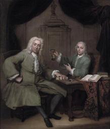 Keywords: Michiel de Roode (1685-1771) and Jan Punt (1711-1779), holding a miniature portrait of Joost van den Vondel by Jan Maurits Quinkhard.jpg en Michiel de Roode 1685-1771 and Jan Punt 1711-1779 holding a miniature portrait of Joost van den Vondel seated full-length at a table in a decorative room JM Quinkhard fecit 1738 lower right signature / date oil on canvas 69 7 x 59 6 cm http //www christies com/LotFinder/lot_details aspx from searchresults intObjectID 5337564 sid 6f0a598d-5069-4de2-9659-95d462bccb87 Christie's Creator Jan Maurits Quinkhard 1738 PD-old-100 Jan Maurits Quinkhard Joost van den Vondel Jan Punt
