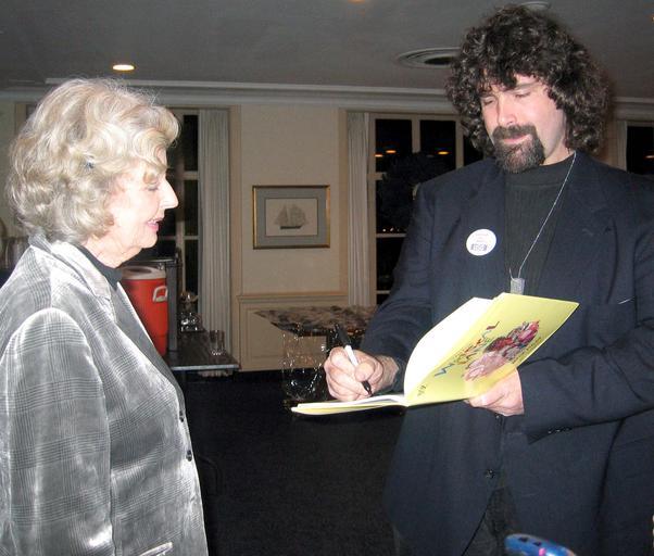 Keywords: Mick Foley and Joyce Rumsfeld.jpg WWE wrestler Mick Foley with Joyce Rumsfeld http //www defenselink mil/news/Dec2004/n12102004_2004121005 html 2004-12-10 Donna Miles All of these files are in the public domain unless otherwise indicated However we request you credit the photographer/videographer as indicated or simply Department of Defense Original Caption World Wrestling Entertainment champion Mick Foley signs a copy of his children's book Tales From Wrescal Lane for Joyce Rumsfeld wife of Defense Secretary Donald Rumsfeld Foley presented copies of the book to children of wounded troops at a Dec 9 Pentagon holiday dinner Photo by Donna Miles PD-USGov Mick Foley |
