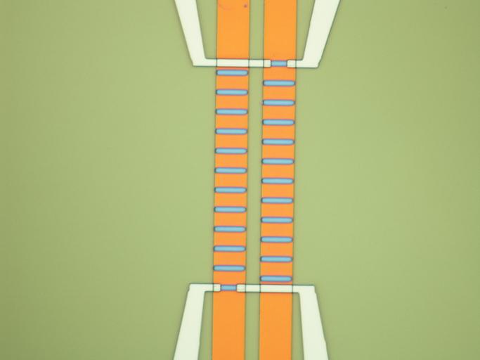 | Keywords: Micrograph of magnetic microfluidic chip (6276983108).jpg Micrograph of magnetic microfluidic chip developed by the National Institute of Standards and Technology and University of Colorado Boulder Brief pulses of electrical current in the two orange lines generate a magnetic field to turn individual spin valves blue bars on and off moving a magnetic bead up or down the ladder See also http //www nist gov/pml/electromagnetics/magnetics/magnetic-101311 cfm www nist gov/pml/electromagnetics/magnetics/magnetic-1013 Credit W Altman/CU and NIST Disclaimer Any mention of commercial products within NIST web pages is for information only; it does not imply recommendation or endorsement by NIST Use of NIST Information These World Wide Web pages are provided as a public service by the National Institute of Standards and Technology NIST With the exception of material marked as copyrighted information presented on these pages is considered public information and may be distributed or copied Use of appropriate byline/photo/image credits is requested https //www flickr com/photos/usnistgov/6276983108/ Micrograph of magnetic microfluidic chip 2011-10-11 15 19 https //www flickr com/people/63059536 N06 National Institute of Standards and Technology PD-USGov National Institute of Standards and Technology https //flickr com/photos/63059536 N06/6276983108 2016-09-07 02 12 36 United States Government Work Uncategorized 2016 December 20 |