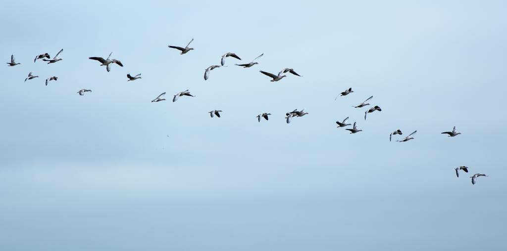 Keywords: migratory birds geese wild geese flock of birds swarm fly formation birds sky