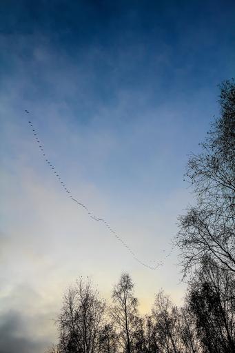 Keywords: migratory birds sky flock of birds migratory bird birds bird swarm clouds fly geese wild geese blue nature wild goose formation bird flight goose sunlight formation flight