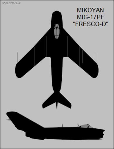 Keywords: Mikoyan-Gurevich MiG-17PF two-view silhouette.png en 2-view silhouettes of the Mikoyan-Gurevich MiG-17PF http //www vectorsite net/Avmig15_2_04 png greg goebel 2011-01-18 VectorSite images by Greg Goebel are In The Public Domain Greg Goebel MiG-17 drawings Images by Greg Goebel |
