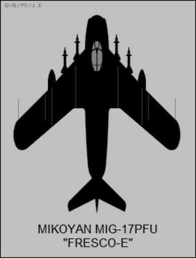 Keywords: Mikoyan-Gurevich MiG-17PFU top-view silhouette.png en Plan-view silhouette of the Mikoyan-Gurevich MiG-17PFU http //www vectorsite net/Avmig15_2_06 png greg goebel 2011-01-18 VectorSite images by Greg Goebel are In The Public Domain Greg Goebel MiG-17 drawings Images by Greg Goebel |