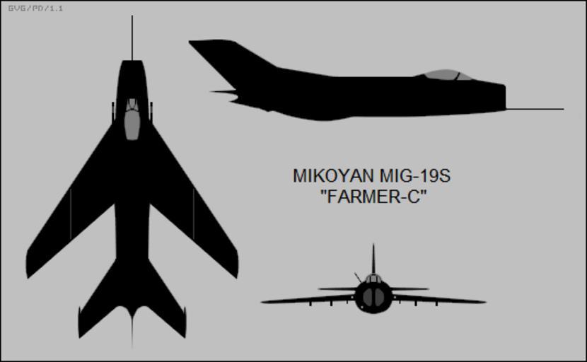 Keywords: Mikoyan-Gurevich MiG-19S three-view silhouette.png 3-view silhouettes of the Mikoyan-Gurevich MiG-19S http //www vectorsite net/Avmig15_3_03 png 2011-01-18 Greg Goebel VectorSite images by Greg Goebel are In The Public Domain Greg Goebel Silhouette drawings of aircraft MiG-19 drawings Images by Greg Goebel |