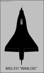 View Original: | Mikoyan-Gurevich MiG-21I Analog top-view silhouette.png (201x331) | |||