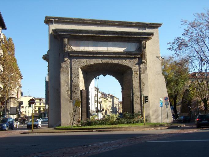 Keywords: Milano Porta Romana retro.JPG it L'arco di Porta Romana in piazza Medaglie d'Oro a Milano vista dal lato del centro città own Friedrichstrasse 2009-11 Porta Romana Milan Piazza Medaglie d'Oro Milan