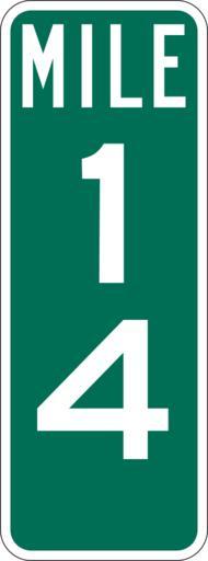 Keywords: Mile Marker 14.svg PD MUTCD Rfc1394 457 1676 18 60 double digit mile marker D10-2 Self/Computer Generated 2009-03-05 Paul Robinson Own work all rights released Public domain D10-2 - Distance Signs-2 Digit