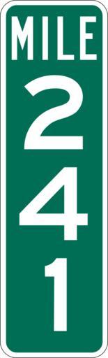 Keywords: Mile Marker 241.svg PD MUTCD Rfc1394 457 1676 18 60 triple digit mile marker D10-3 Made using Viridian SVG Batcher this file was fabricated by a program 2009-03-05 Paul Robinson Rfc1394 Own work all rights released Public domain D10-3 - Distance Signs-3 Digit 241 number |