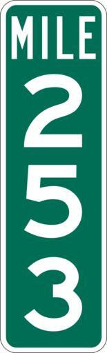 | Keywords: Mile Marker 253.svg PD MUTCD Rfc1394 457 1676 18 60 triple digit mile marker D10-3 Made using Viridian SVG Batcher this file was fabricated by a program 2009-03-05 Paul Robinson Rfc1394 Own work all rights released Public domain D10-3 - Distance Signs-3 Digit |