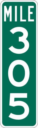 | Keywords: Mile Marker 305.svg PD MUTCD Rfc1394 457 1676 18 60 triple digit mile marker D10-3 Made using Viridian SVG Batcher this file was fabricated by a program 2009-03-05 Paul Robinson Rfc1394 Own work all rights released Public domain D10-3 - Distance Signs-3 Digit |