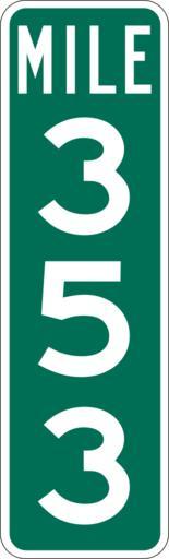 | Keywords: Mile Marker 353.svg PD MUTCD Rfc1394 457 1676 18 60 triple digit mile marker D10-3 Made using Viridian SVG Batcher this file was fabricated by a program 2009-03-05 Paul Robinson Rfc1394 Own work all rights released Public domain D10-3 - Distance Signs-3 Digit |