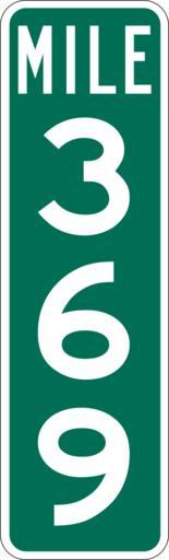 | Keywords: Mile Marker 369.svg PD MUTCD Rfc1394 457 1676 18 60 triple digit mile marker D10-3 Made using Viridian SVG Batcher this file was fabricated by a program 2009-03-05 Paul Robinson Rfc1394 Own work all rights released Public domain D10-3 - Distance Signs-3 Digit |
