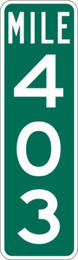 | Keywords: Mile Marker 403.svg PD MUTCD Rfc1394 457 1676 18 60 triple digit mile marker D10-3 Made using Viridian SVG Batcher this file was fabricated by a program 2009-03-05 Paul Robinson Rfc1394 Own work all rights released Public domain D10-3 - Distance Signs-3 Digit |