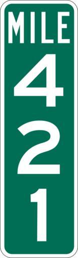 Keywords: Mile Marker 421.svg PD MUTCD Rfc1394 457 1676 18 60 triple digit mile marker D10-3 Made using Viridian SVG Batcher this file was fabricated by a program 2009-03-05 Paul Robinson Rfc1394 Own work all rights released Public domain D10-3 - Distance Signs-3 Digit 421 number |