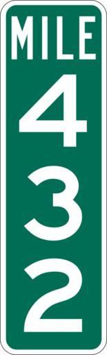 | Keywords: Mile Marker 432.svg  PD MUTCD Rfc1394 457 1676 18 60 triple digit mile marker D10-3 Made using Viridian SVG Batcher this file was fabricated by a program 2009-03-05 Paul Robinson Rfc1394 Own work all rights released Public domain D10-3 - Distance Signs-3 Digit |