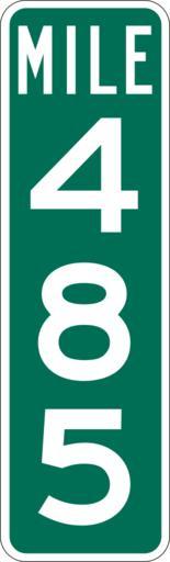 | Keywords: Mile Marker 485.svg PD MUTCD Rfc1394 457 1676 18 60 triple digit mile marker D10-3 Made using Viridian SVG Batcher this file was fabricated by a program 2009-03-05 Paul Robinson Rfc1394 Own work all rights released Public domain D10-3 - Distance Signs-3 Digit |