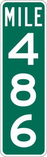 | Keywords: Mile Marker 486.svg  PD MUTCD Rfc1394 457 1676 18 60 triple digit mile marker D10-3 Made using Viridian SVG Batcher this file was fabricated by a program 2009-03-05 Paul Robinson Rfc1394 Own work all rights released Public domain D10-3 - Distance Signs-3 Digit |